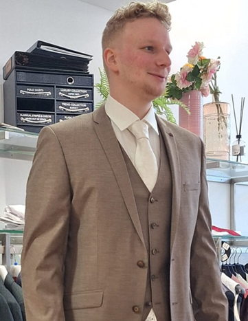 In de middag zijn we afgereisd naar Capelle a/d IJssel, deze winkel had een aantal hele mooie keuzes die erg goed pasten bij het beeld dat André vooraf had! Er waren uiteindelijk twee pakken die het best bevielen, en het was erg lastig om een knoop door te hakken. Maar… het is gelukt! Met een heel mooi eindresultaat!’’