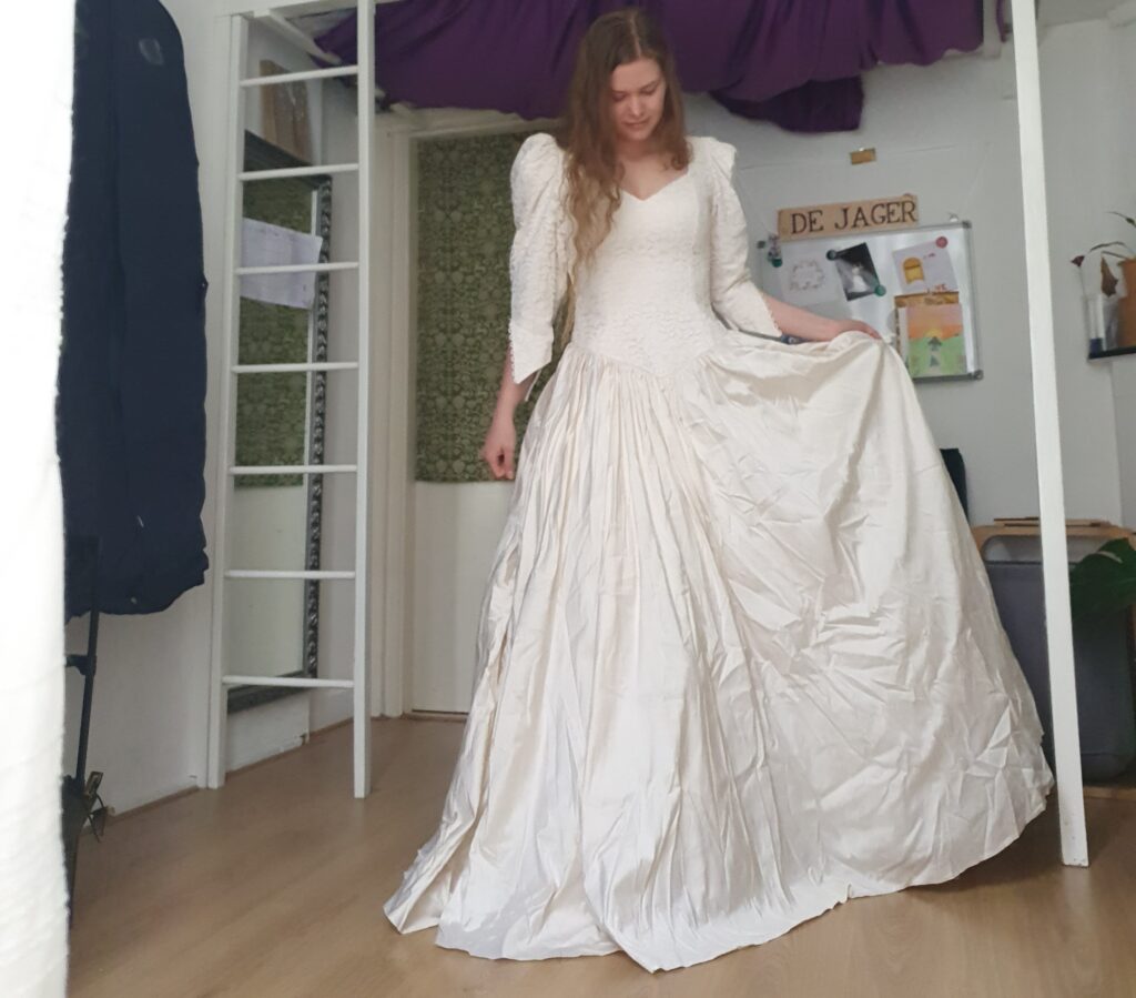 De passessie van de trouwjurk was eindelijk daar! Ik had stiekem wel even mijn jurk gemist. We werden weer hartelijk ontvangen, waarna ik snel in de jurk gehesen werd. Ik was namelijk ietsjes te laat, woepsie. Ik mocht al mijn wensen aangeven en samen met mijn entourage bekeken we elk detail dat we nog mooier wilden maken. Qua maat paste de jurk al best goed, behalve de lengte, die was veel te lang.
