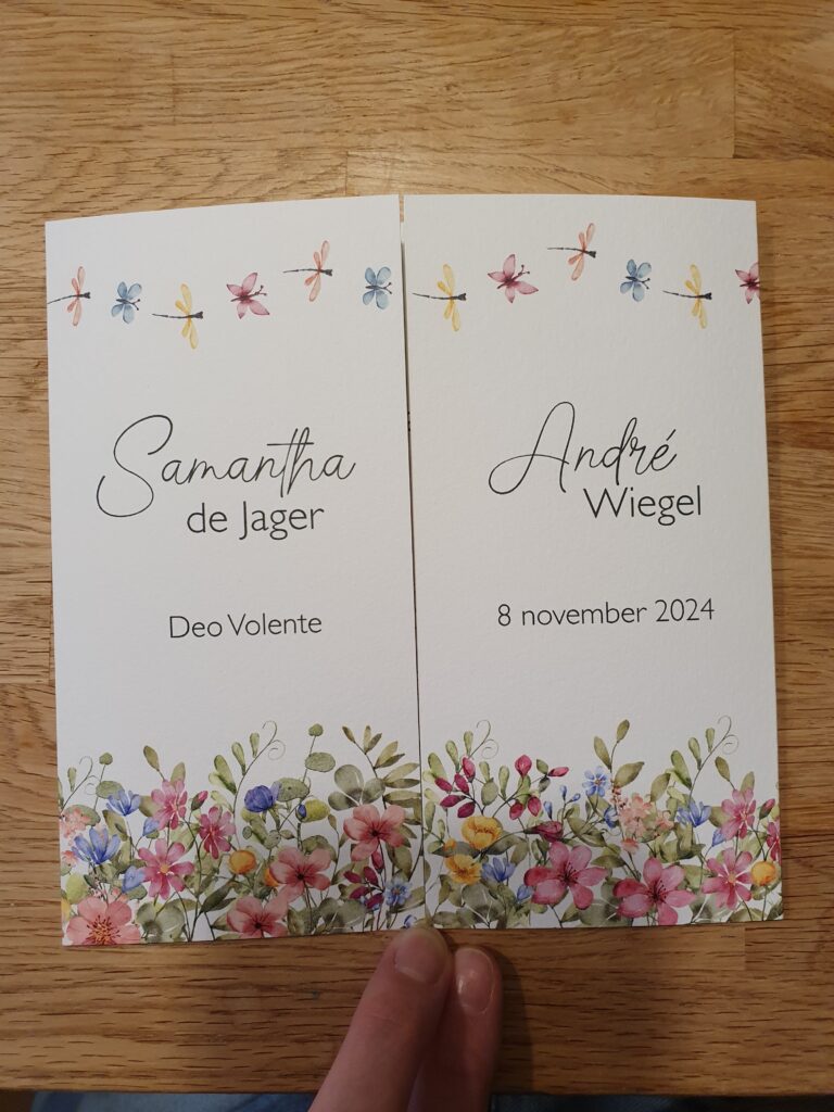 Een creatieve uitdaging: de trouwkaarten. Gelukkig stonden we er niet alleen voor, na zeer tevreden te zijn met de prachtige Save the Date kaart die Jade voor ons heeft gemaakt, helpt ze ons ook om een trouwkaart te maken. We boffen erg met zo’n creatief brein die onze ideeën ook om kan toveren naar iets wat we ook werkelijk kunnen printen, zodat we het naar jullie zouden kunnen versturen. We wilden graag een speels aspect terug laten komen in de kaart, een mooie Bijbeltekst en wat persoonlijks aspecten. We zullen niet te veel in detail treden, zodat jullie hem kunnen bewonderen als hij binnenkomt! Naar onze mening is dit allemaal goed gelukt. De kaarten zijn ondertussen binnengekomen en wij zijn al enorm enthousiast om dit met jullie te delen! Dus wij gaan deze zo snel mogelijk klaarmaken om naar jullie toe te sturen.